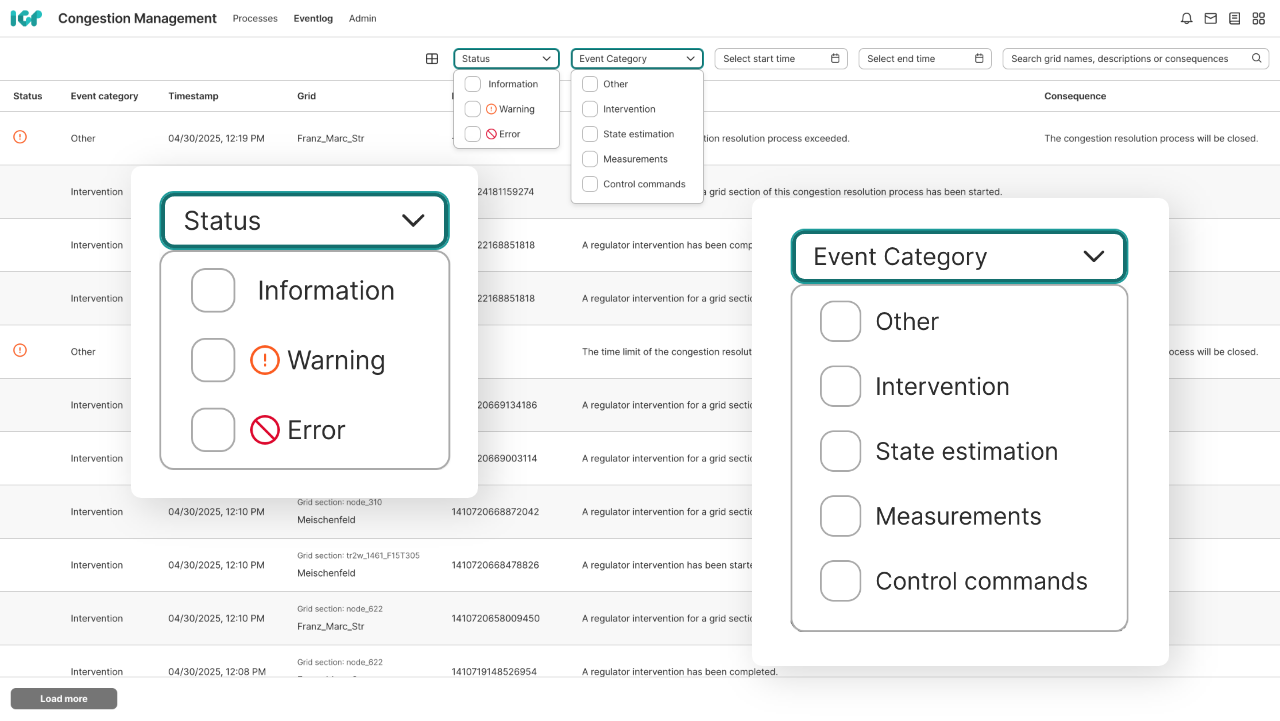 All grid areas where grid-oriented control measures have been applied are documented and can be exported and downloaded if necessary. In addition, the app includes an event log that records all relevant system messages during the control event – from info messages to warnings and errors. For each event, the timestamp, affected grid area, and the response triggered by the app are displayed, allowing to quickly detect any anomalies or exceptions in the automated control process. This way, you can always share this information with other parties in case you’re required to justify throttling the power consumption within a specific grid area.