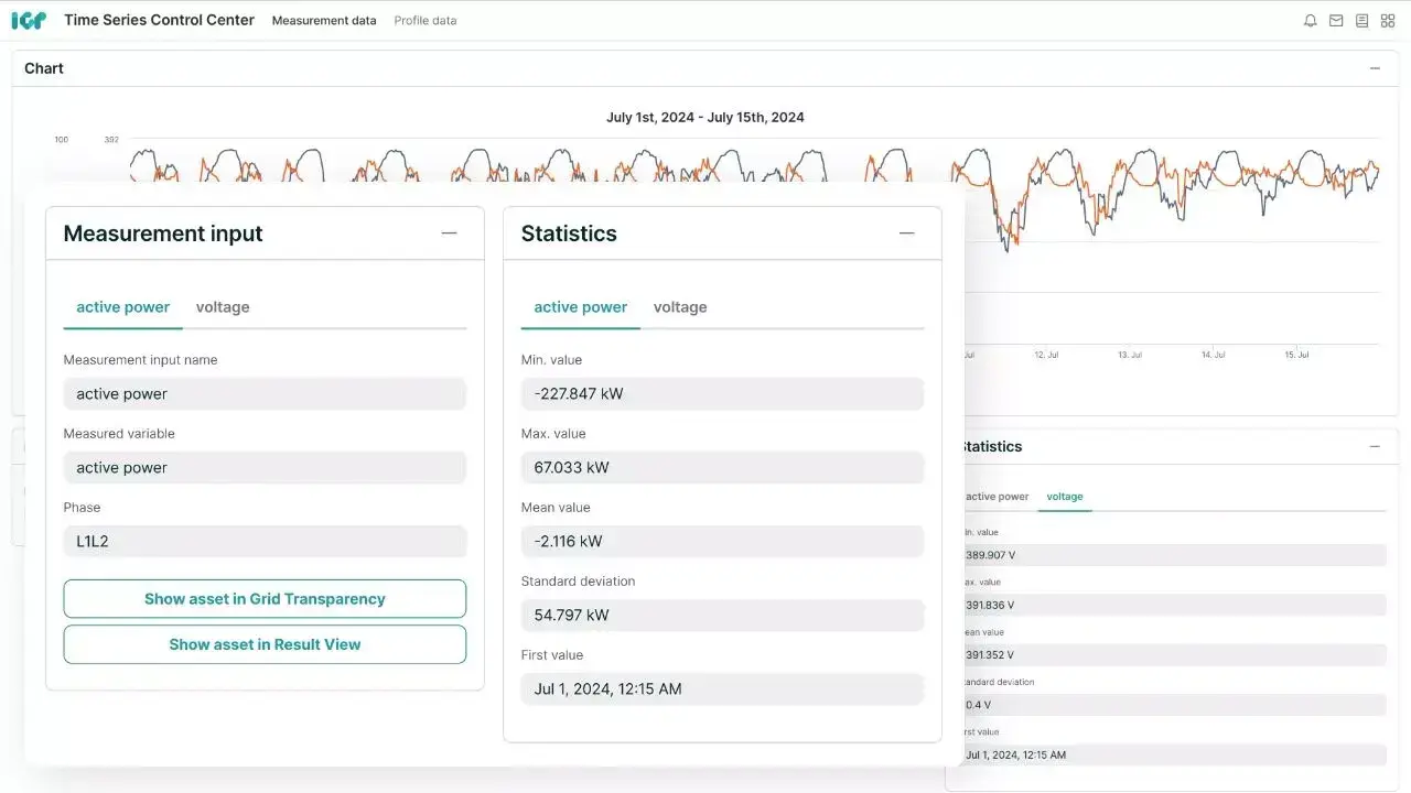 All measurement data is visualized in a standardized format, ensuring consistent and easily understandable visualizations. The automated integration with the grid model ensures that the data is ready for downstream processes without additional effort.
